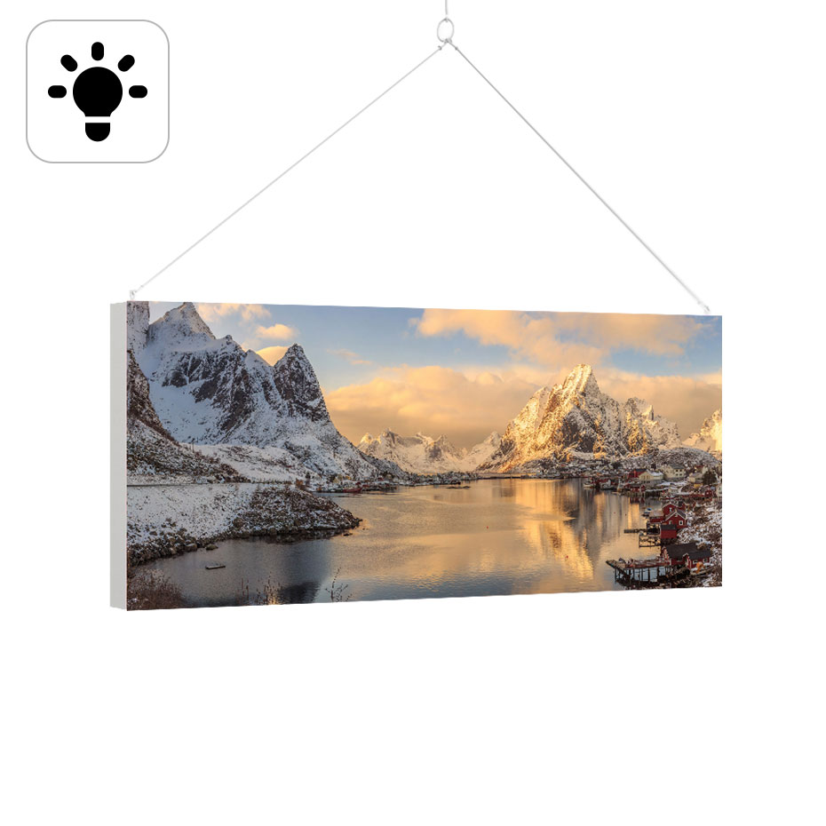 En solid, hengende lyskasse. Dobbeltsidig trykk. Stort utvalg av størrelser. Vår bestselger. Dette produktet er designet for å settes sammen med et minimum antall verktøy. Stabiliteten til produktet sikres av en ramme med en bredde på 14 centimeter. I tillegg til de mest populære størrelsene, kan vi også lage et produkt etter ditt ønske.